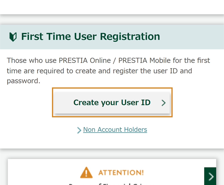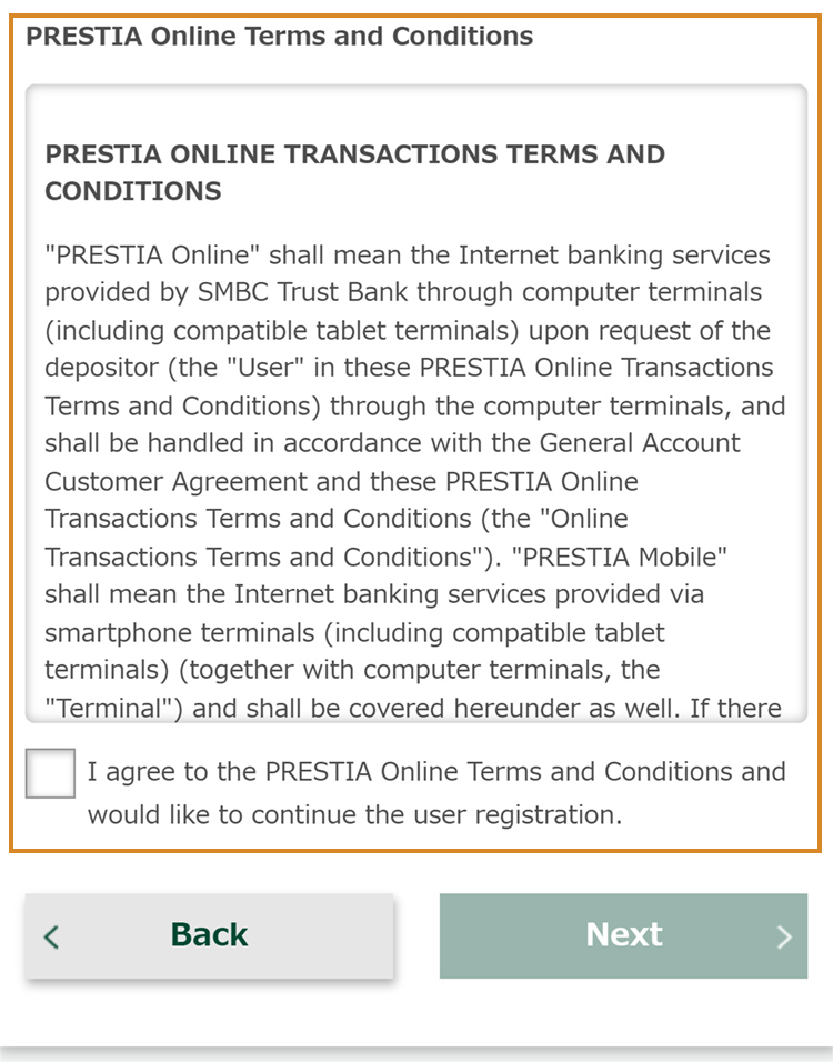 User registration is simple online, and you can start using PRESTIA Online/Mobile immediately.