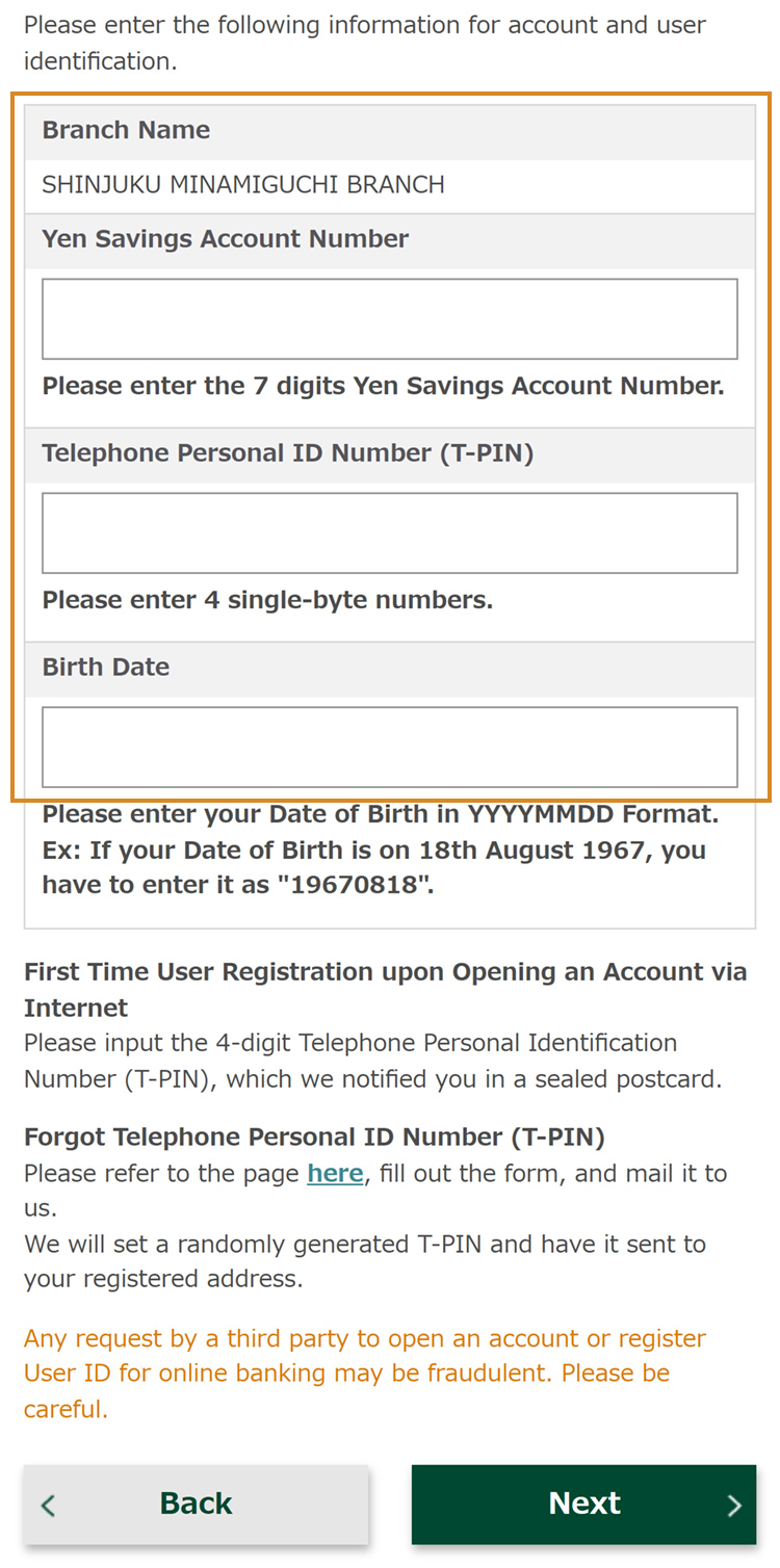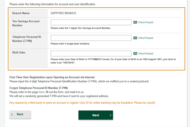 - *2This is the 4-digit PIN you set at account opening at the branch or received by mail. If you have forgotten your Telephone Transaction PIN, please re-register here.