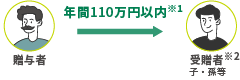 - ※11月1日から12月31日までの1年間に受贈者(贈与を受ける方)1人につき、110万円以内の年間受贈額合計の場合。